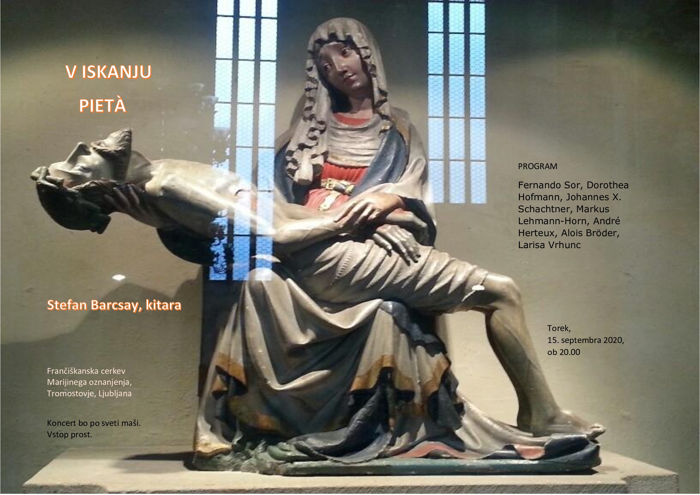 Larisa hatte die Uraufführung am 15. September 2020 in der Franziskaner-Kirche im Zentrum von Ljubljana organisiert. Das Konzert, zu dem ich mehrere Stücke aus meinem Programm AUF DEM WEG ZUR PIETÀ spielte, wurde vom Staatlichen Slowenischen Rundfunk aufgezeichnet und später gesendet. Die jüngere Tochter von Larisa las dazu Texte aus dem Stabat Mater.